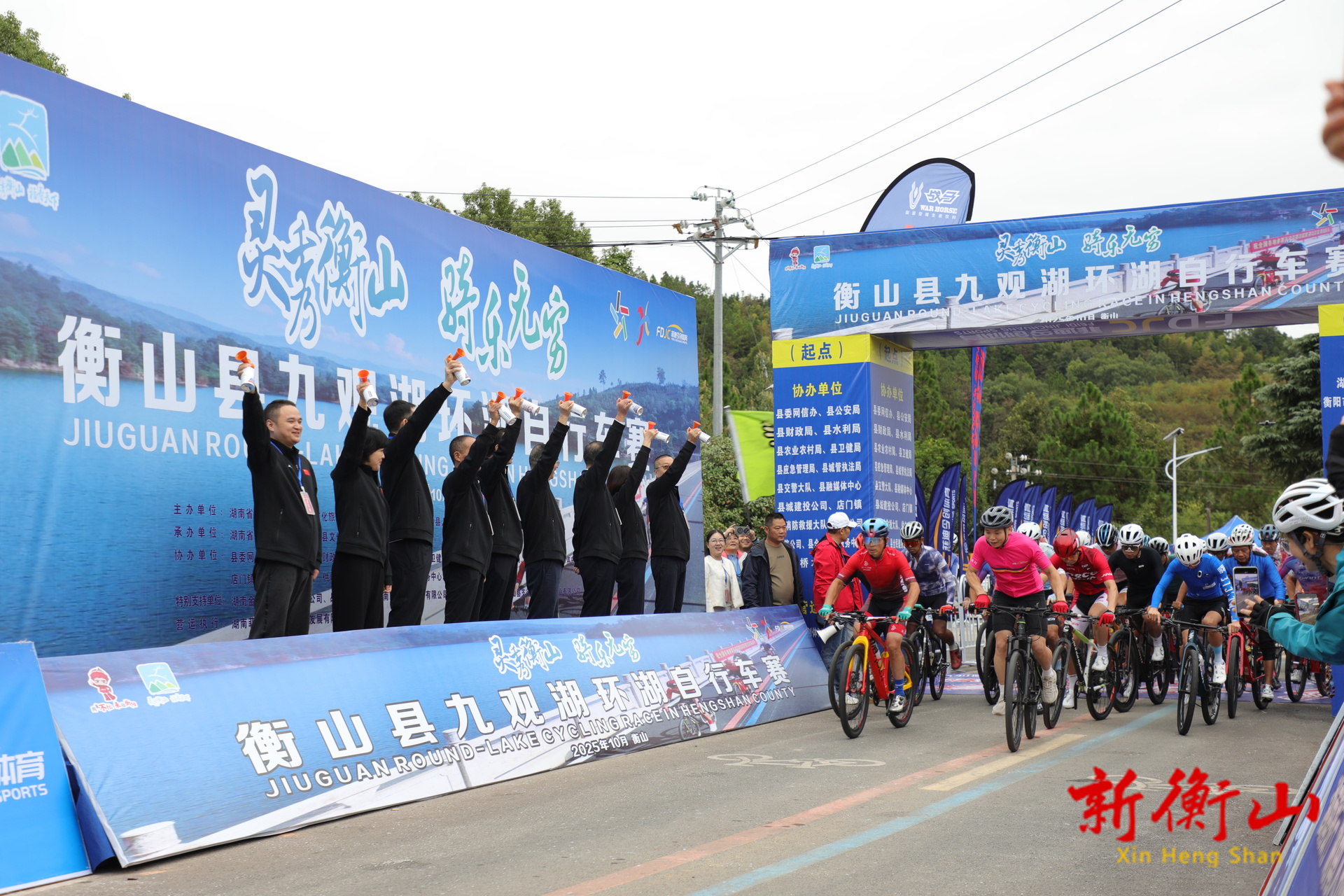 金秋十月,湖光潋滟,在第三届衡阳市旅游发展大会即将在衡山县举办之际,被誉为衡山“巴音布鲁克”的九观湖景区迎来一场体育盛宴。10月19日,2025湖南·衡山“九观湖”环湖自行车赛在如诗如画的九观湖鸣枪开赛。衡阳市政协副主席、市文旅广体局副局长叶玉泉,衡阳市政协副主席、衡山县委书记戴新贤,衡阳市文旅广体局党组副书记、副局长吴建波,县领导谢斌、唐年初、谷蓉、陈燕春、蒋平、宋少峰出席开幕式。